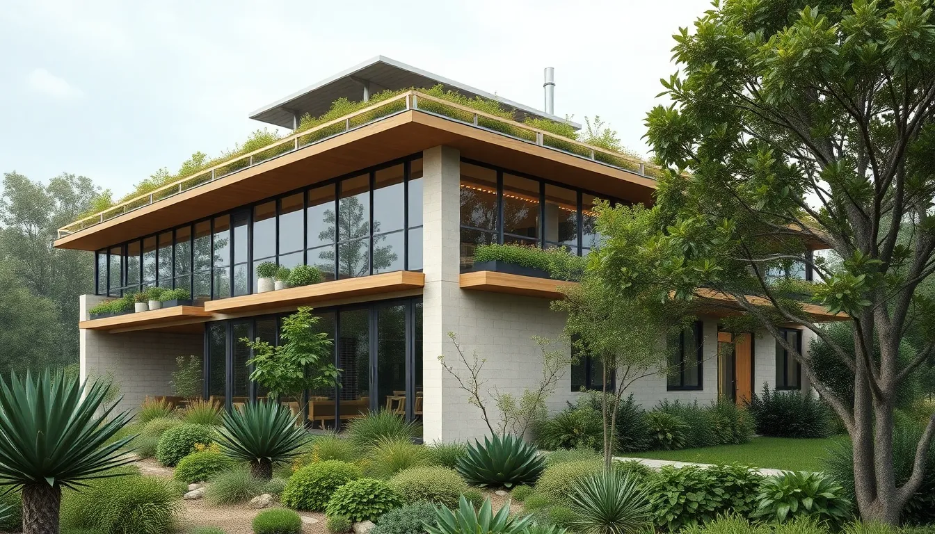 The Bosque House in New Mexico employs passive solar design, maximizing natural light while minimizing energy consumption. Another impressive example, One Central Park in Sydney, integrates vertical gardens that enhance air quality and thermal performance. The Bullitt Center in Seattle demonstrates advanced sustainability features, such as rainwater harvesting and composting toilets. Each structure illustrates how design choices promote ecological health and create harmonious environments.